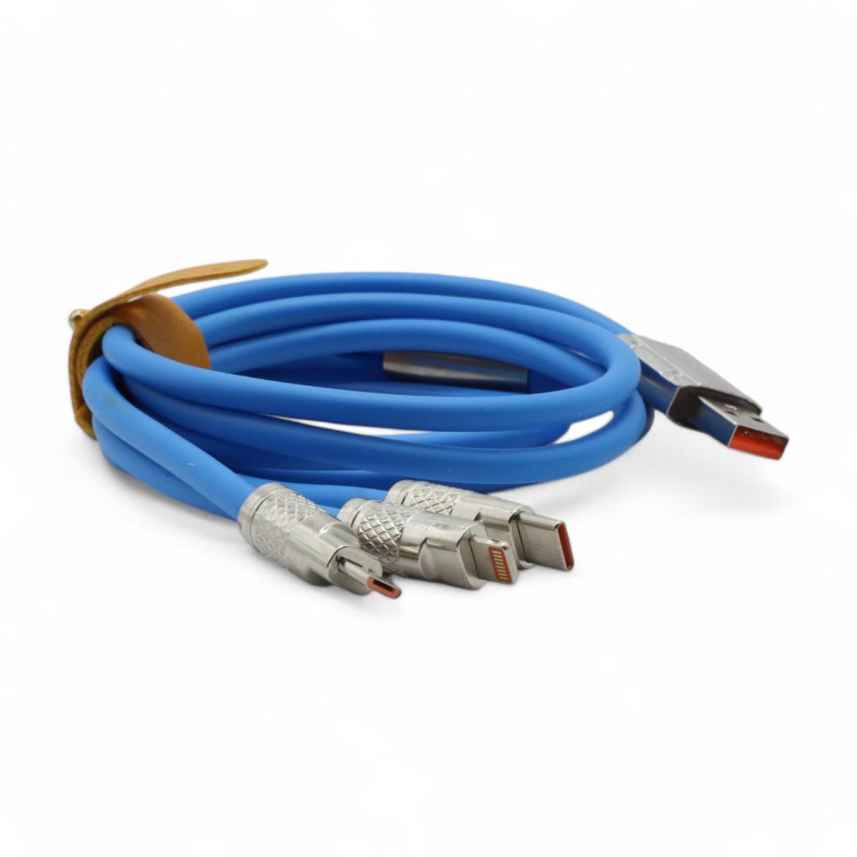 Viges 3'ü Bir Arada Type-C-Micro Usb-Lightning Uyumlu Metal Başlıklı 4 Renk Şarj Kablosu Toplu Satış- 40 Adet )